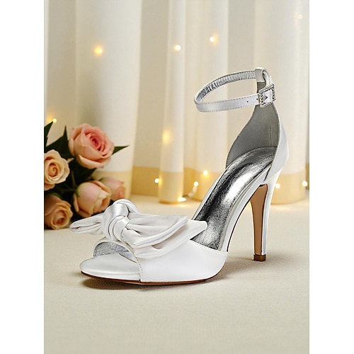 sandali da sposa eleganti con cinturino alla caviglia e tacco a spillo da donna, scarpe da sposa con tacco alto e punta aperta per la sposa, tacchi da cerimonia bianchi minimalisti