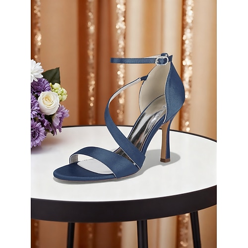 sandali da donna con tacco alto in raso viola e fibbia di strass eleganti tacchi a spillo con cinturino alla caviglia e punta aperta per cocktail party eventi serali