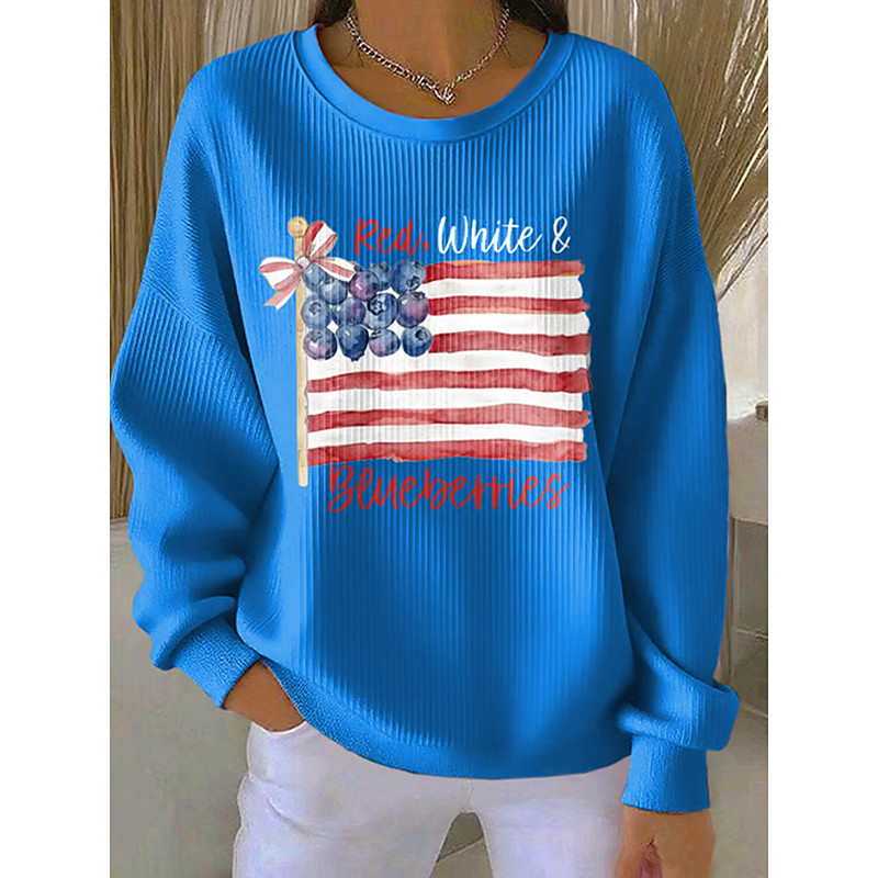 Women's Pullover Graphic Letter Warm Classic Casual Long Sleeve Crew Neck Regular Tops Casual Home Street Print Blue Light Blue Black White Red Spring Fall Winter