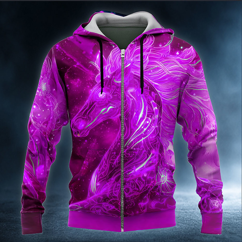 Men's 3D Hoodie Jacket Sweatshirt Fantasy Pegasus All Over Print Zip Vacation Going out Streetwear Blue Dark Green Zipper Fall Winter Designer