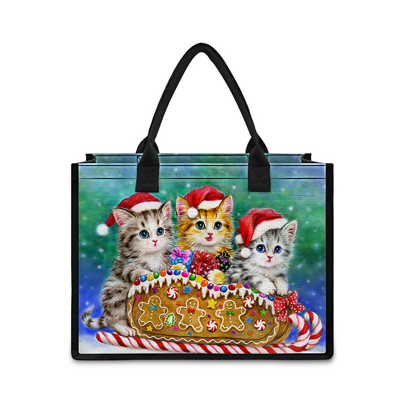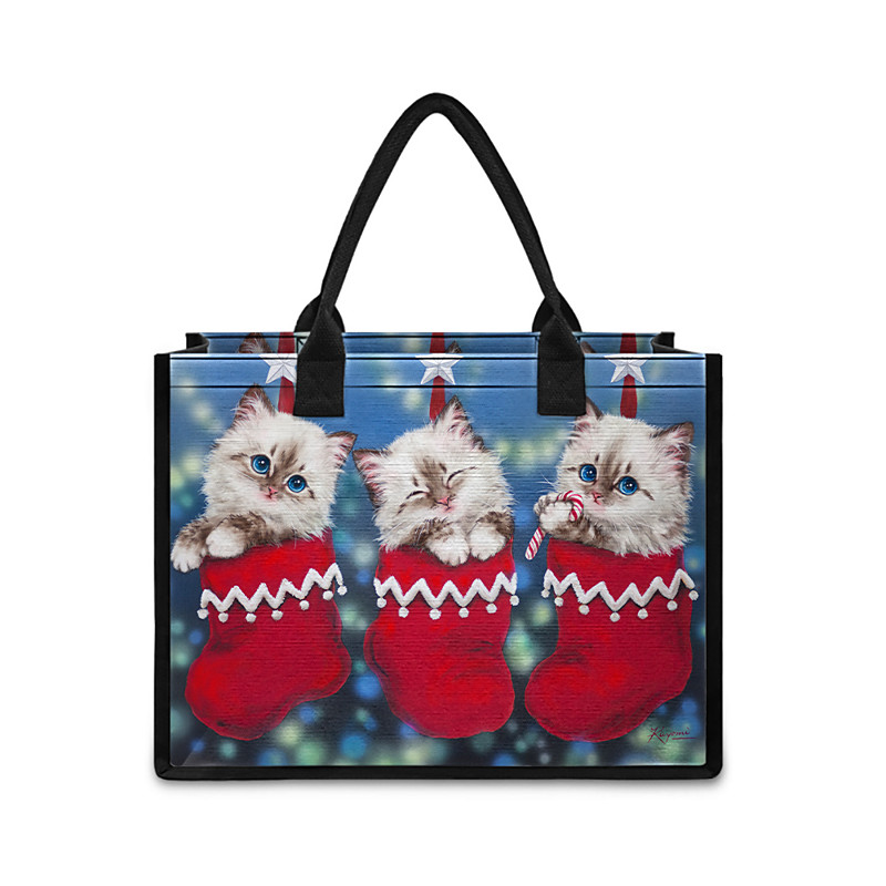 Women's Christmas Tote Bag – Featuring Kayomi Harai's Festive Cat Designs, Vibrant Christmas Stockings, Ideal for Holiday Shopping, Gifts and Winter Celebrations