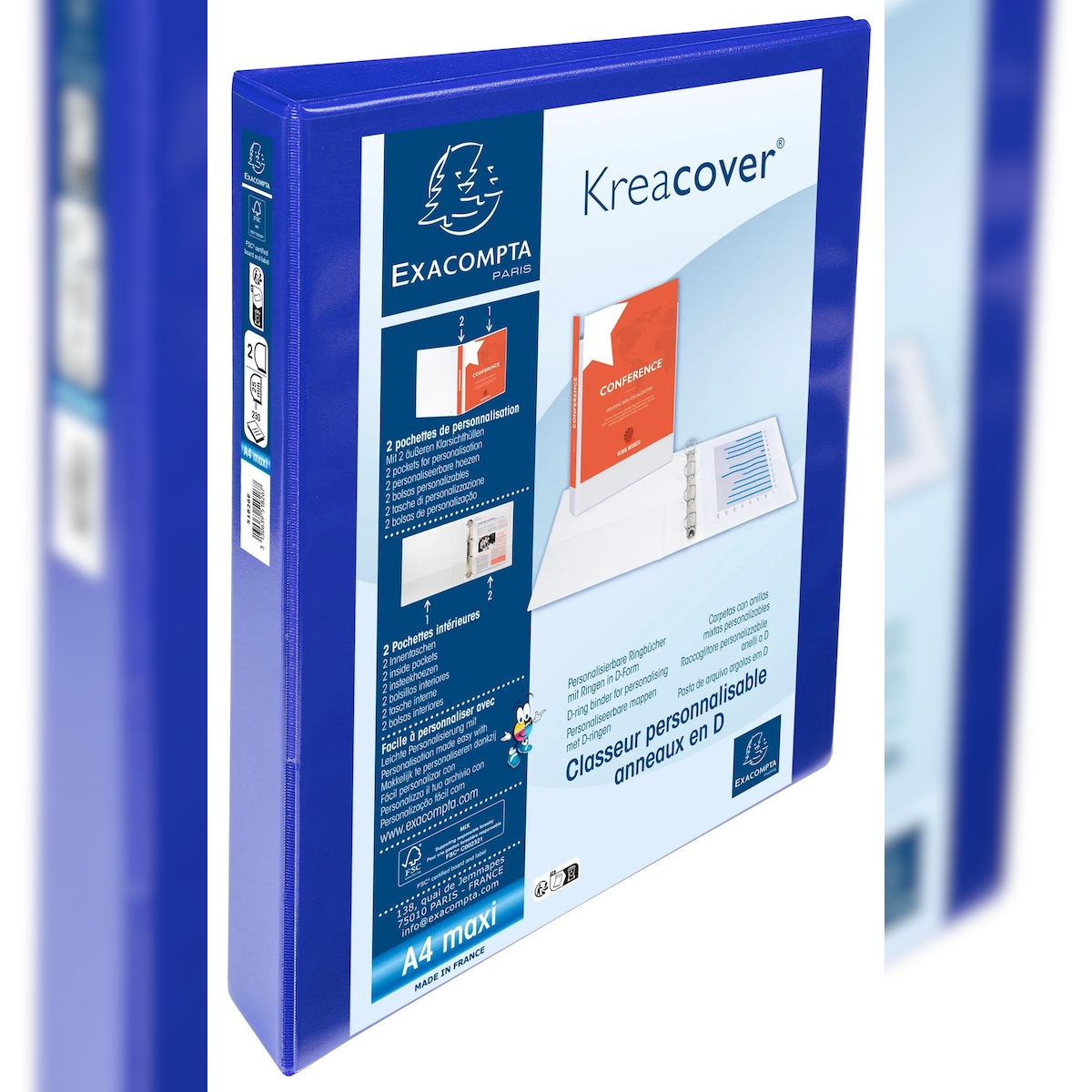 Exacompta 51826BE 10x Ringbuch, 2 Ringe 25mm Rücken 47mm Rücken und 3 Außen- und 2 Innenhüllen, 32x27,7cm für DIN A4 MAXI - Kreacover - Blau
