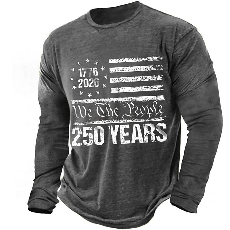 America's 250th Anniversary Men's American US Flag T Shirt Long Sleeve T shirt 3D Print Crew Neck Shirt Daily Casual Daily Travel Party Blue Black Red Summer Spring Fall Clothing Apparel S M L XL XXL
