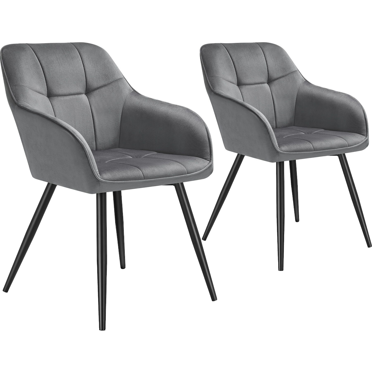 TECTAKE Stuhl Marilyn, Samtoptik, gesteppt 2er Setgrau/schwarz