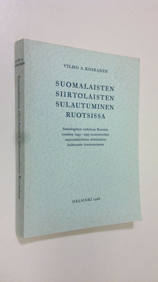 Vilho Antero Koiranen : Suomalaisten siirtolaisten sulautuminen Ruotsissa : sosiologinen tutkimus Ruotsiin vuosina 1945-1959 muuttaneiden ...