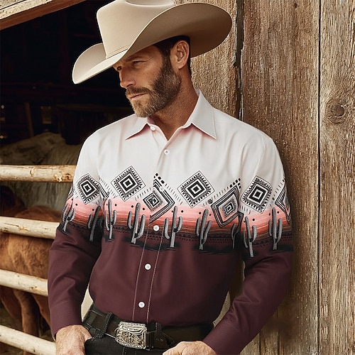 Per uomo Motivo Geometrico Etnico Cultura indiana Camicia Camicia Western Camicia da cowboy Manica Lunga Vintage Retrò All'aperto Casuale Abbigliamento da lavoro Primavera Autunno Collo ripiegato