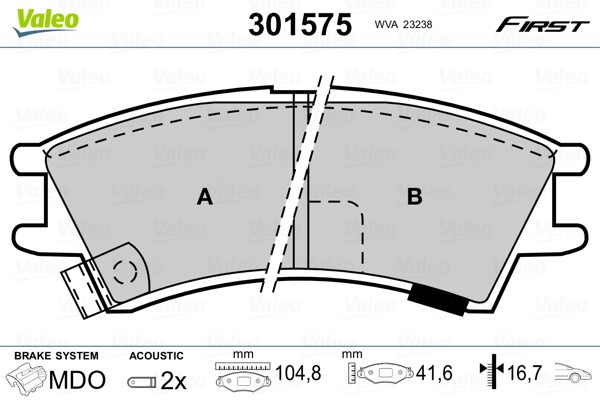 Jarrupalasarja, levyjarru, Etuakseli Valeo 301575 - hyundai atos - OE 5810102A00, 58101-02A00