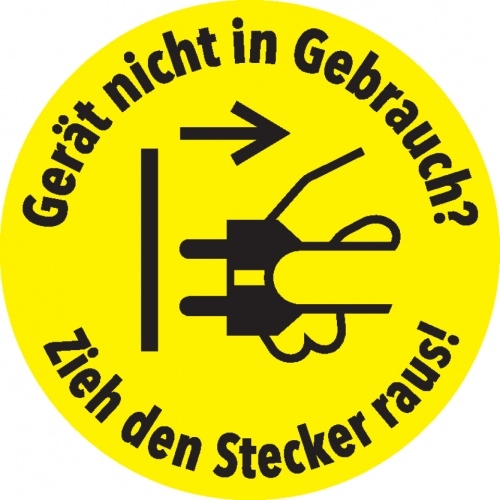 Dreifke® Aufkleber | Klimalabel Gerät nicht in Gebrauch? - Zieh den Stecker raus!, Folie, Ø 100mm
