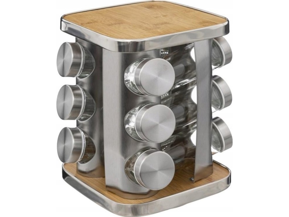 5five Maustehylly, 12 purkkia, bambu ja ruostumaton teräs