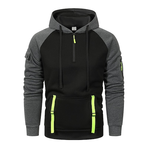 Per uomo Felpa con cappuccio Felpa con cappuccio e zip corta Felpa con cappuccio in pile Felpa con cappuccio tattica Nero Cachi Grigio scuro Con Cappuccio Semplice Patchwork Cerniera Blocco di colore