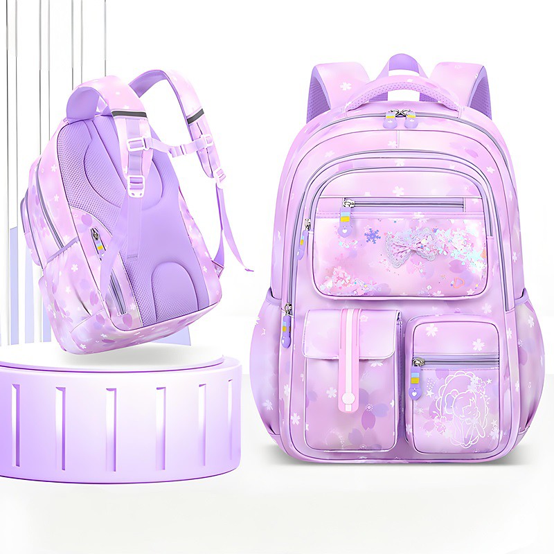Girls Pink School Backpack – Cute Waterproof Bookbag with Bow and Glitter Design, Lightweight Back to School Bag for Elementary Kids