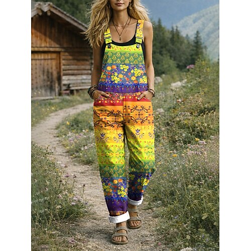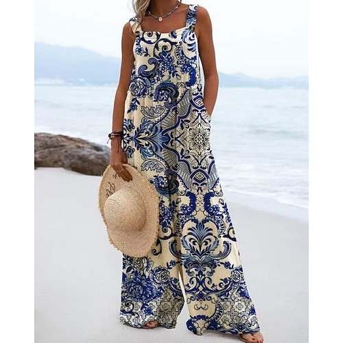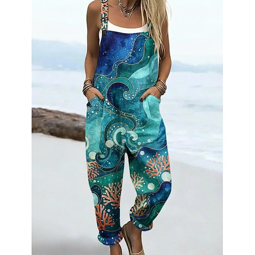 Per donna Salopette Attivo Grafico Senza Maniche Senza maniche Dritto Collo quadrato Tasca Vacanza Quotidiano Vestibilità comoda Bianco Blu Verde Estate
