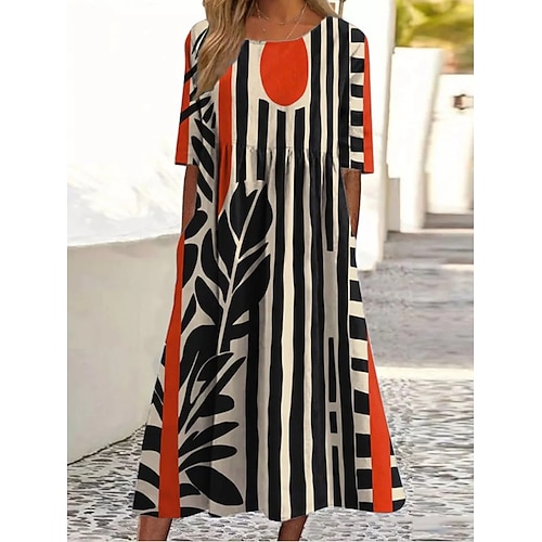 Per donna Abito maxi Vestito Casual Classico Spiaggia Vestibilità comoda Grafico Astratto Mezza Manica Girocollo Blu Nero Viola Arancione Estate Primavera