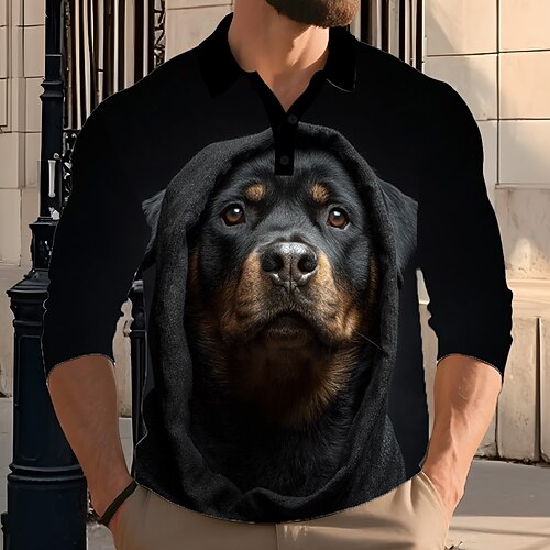 Per uomo Animale Cane Polo Manica Lunga Magliette polo Bavero Casual All'aperto Streetwear Athleisure Abbigliamento quotidiano Stampa 3D Bottoni Primavera Autunno Inverno Marrone scuro Nero