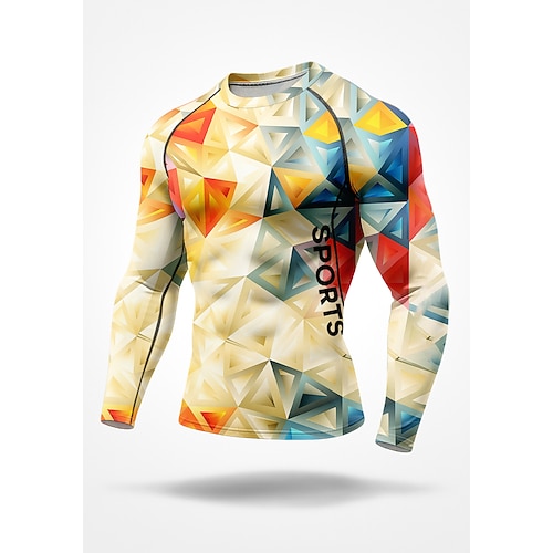 Per uomo Maglia a compressione Maglia da corsa Stampa 3D Manica Lunga Livello Base Geometrico Asciugatura Rapida Compressione Elasticizzato Traspirante Allenamento in Palestra Allenamento attivo
