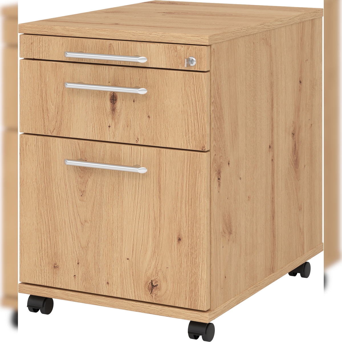 bümö Rollcontainer mit Hängeregistratur, Container abschließbar aus Holz in Asteiche - Rollwagen für's Büro mit Hängeregister als Schreibtisch