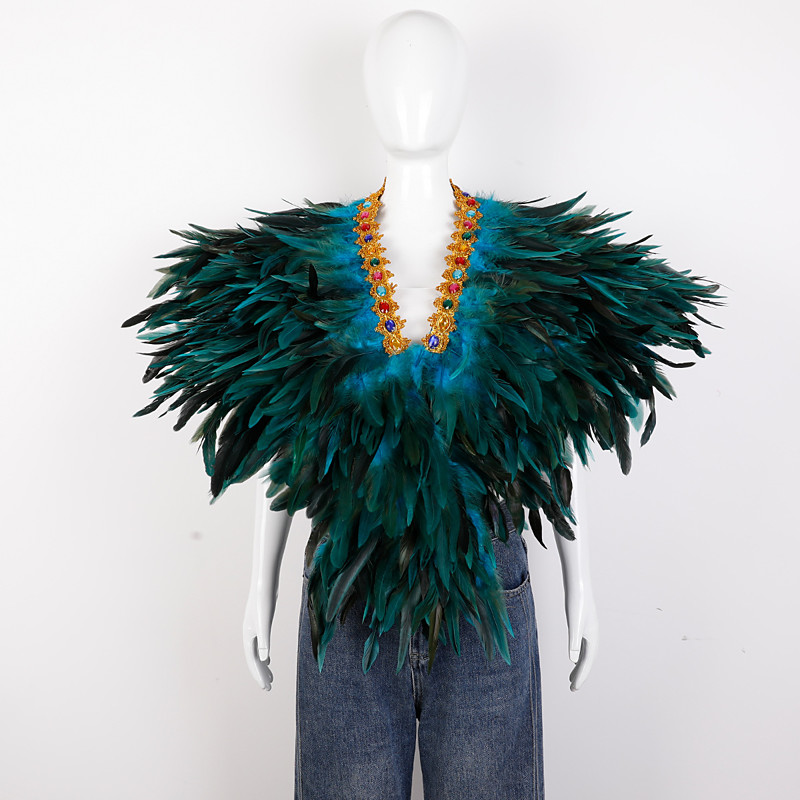Carnival 2026Rio Carnival Samba Accessories Women's Mardi Gras Feather Cape Shawl, Purple Green Gold Feather Poncho with Jeweled Collar Brazil Festival Performance Costume