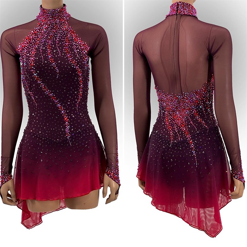 Figure Skating Dress Women's Girls' Ice Skating Dress Red High Elasticity Training Competition Skating Wear Classic Crystal / Rhinestone Long Sleeve Ice Skating Figure Skating