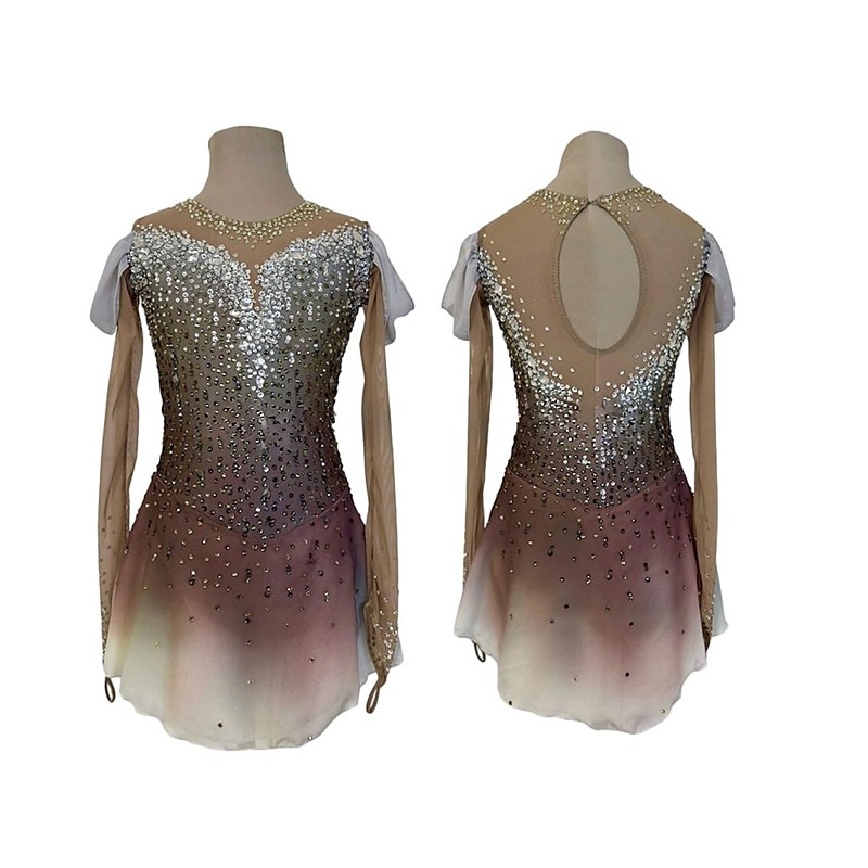 Figure Skating Dress Women's Girls' Ice Skating Dress Brown Open Back Halo Dyeing Mesh Spandex Stretchy Training Practice Professional Skating Wear Thermal Warm Classic Crystal / Rhinestone Sleeveless