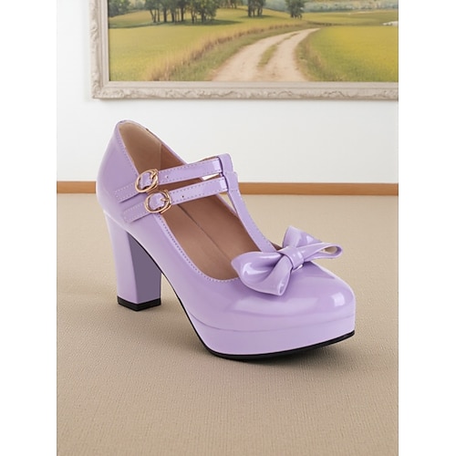 Scarpe con tacco a T da donna vintage anni '50 in similpelle verniciata con dettaglio a fiocco, comode e robuste, eleganti per feste, matrimoni e occasioni speciali