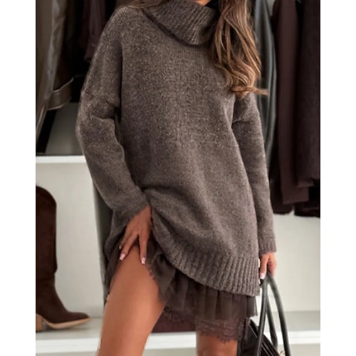 Per donna Mini Abito Abito in maglia Set di vestiti Moderno Quotidiano All'aperto Uscire Vestibilità comoda Semplice Manica Lunga Dolcevita Bianco Marrone chiaro Cachi Rosa Autunno Inverno
