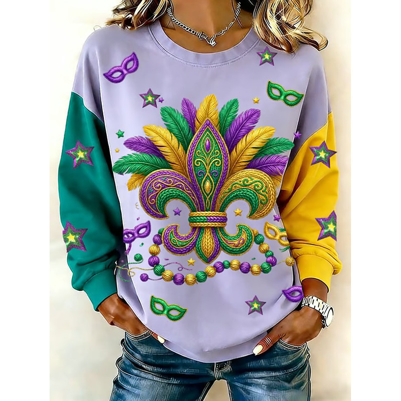 Women's Hoodies Graphic Geometric Color Block Fashion Casual Print Long Sleeve Crew Neck Round Neck Regular Tops Casual Street Buttons Blue Red Purple Green Fall Winter