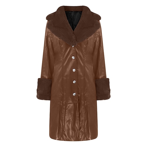 Per donna Giacca in Ecopelle Cappotto Invernale Cappotto Caldo Confortevole Tasca Bottoni Collo in Pelliccia Moda Casual Tinta unica Vacanza Streetwear Casuale Abbigliamento quotidiano Lungo Collo