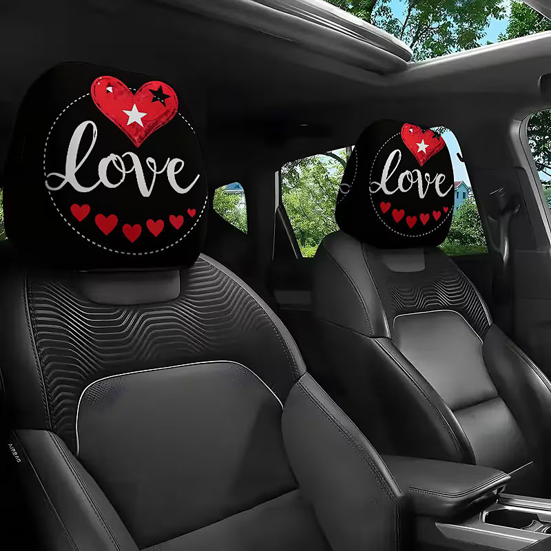 2pcs Cute Flower Love Heart Print Headrest Covers, Valentine's Day Heart-Eyed Girl Car Headrest Protector, Interior Decor, No Filling, Easy to Install and Wash, Suitable for Long-Distance Travel Naps