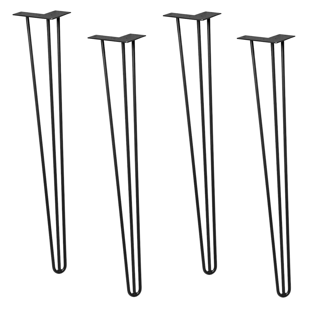 WAGNER Möbelbeine HAIRPIN LEGS Retro 4tlg. Set - 12 x 12 x 71 cm, Stahl, schwarz, Bein schräg&Anschraubplatte - 12827104