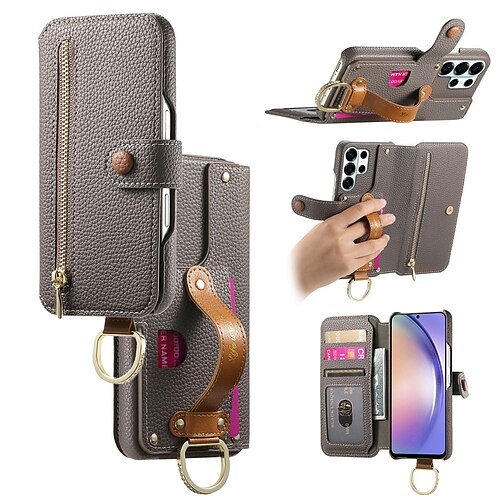 Handy Hülle Handyhüllen Für Samsung Galaxy S26 S26 Plus S26 Ultra Brieftaschenhülle Flip-Cover Reisverschluss Mit Handgelenkschlaufe Ständer Retro TPU PU-Leder