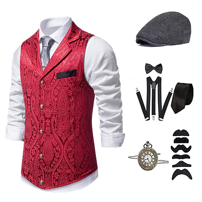 1920s Vintage Inspired The Great Gatsby Party Costume Masquerade Accessories Set Sleeveless Printing Turndown Fancy Dress Men's Halloween Party Evening Casual Daily Adults' Vest Hat All Seasons
