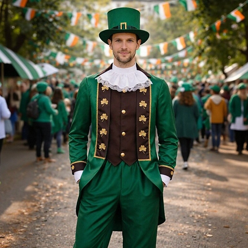 Set St.Patrick 2026 Retro Vintage Medieval Coat Tailcoat Long Sleeves Vampire Gentleman Fancy Dress Men's Royal Halloween Carnival Masquerade Performance LARP Ren Faire Adults Coat Pants Hat
