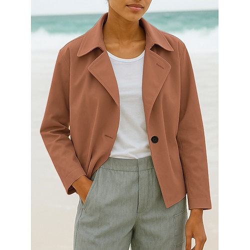 Per donna Giacca Giacca Casual Uscire Bottoni Semplice Confortevole Moda Vestibilità comoda Capispalla Manica Lunga Primavera azzurro cielo S