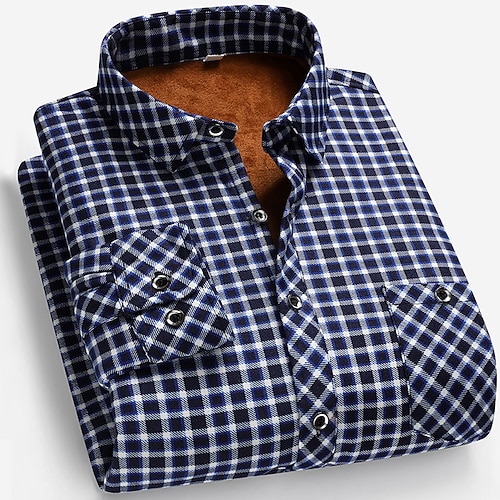Herren Freizeithemd Flanellhemd Kariertes Hemd Knopfhemd Rote Blau Langarm Karo Revers Urlaub Alltagstauglich Button-Down Bekleidung Polyester Mode Lässig Bequem