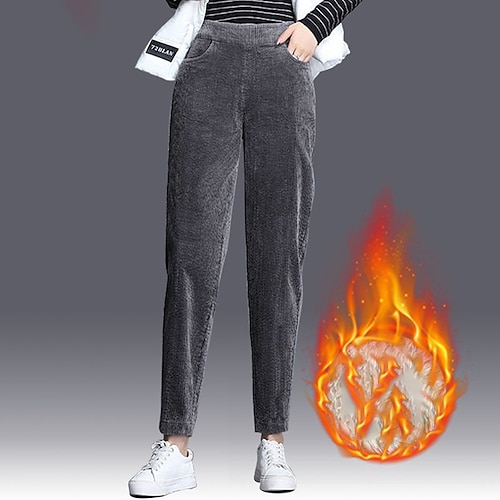 Per donna Pantaloni in Pile Pantaloni in velluto a coste Pantaloni Eleganti Streetwear Casual Lunghezza intera Naturale Semplice Tasca Elastico in vita Confortevole All'aperto Vacanza Abbigliamento