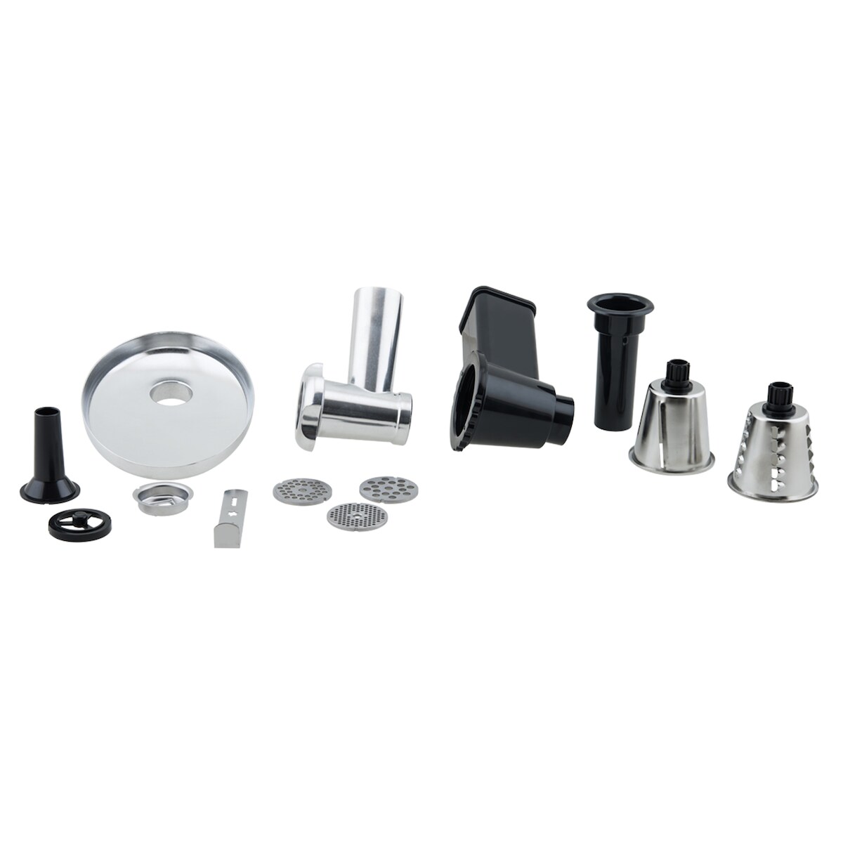 H.Koenig AC8 Zubehör KM80 Küchenmaschine / Fleischwolf / 3 Lochscheiben / Reibe mit 3 Einsätzen / Wurstfüller / Cookie-Set / silber