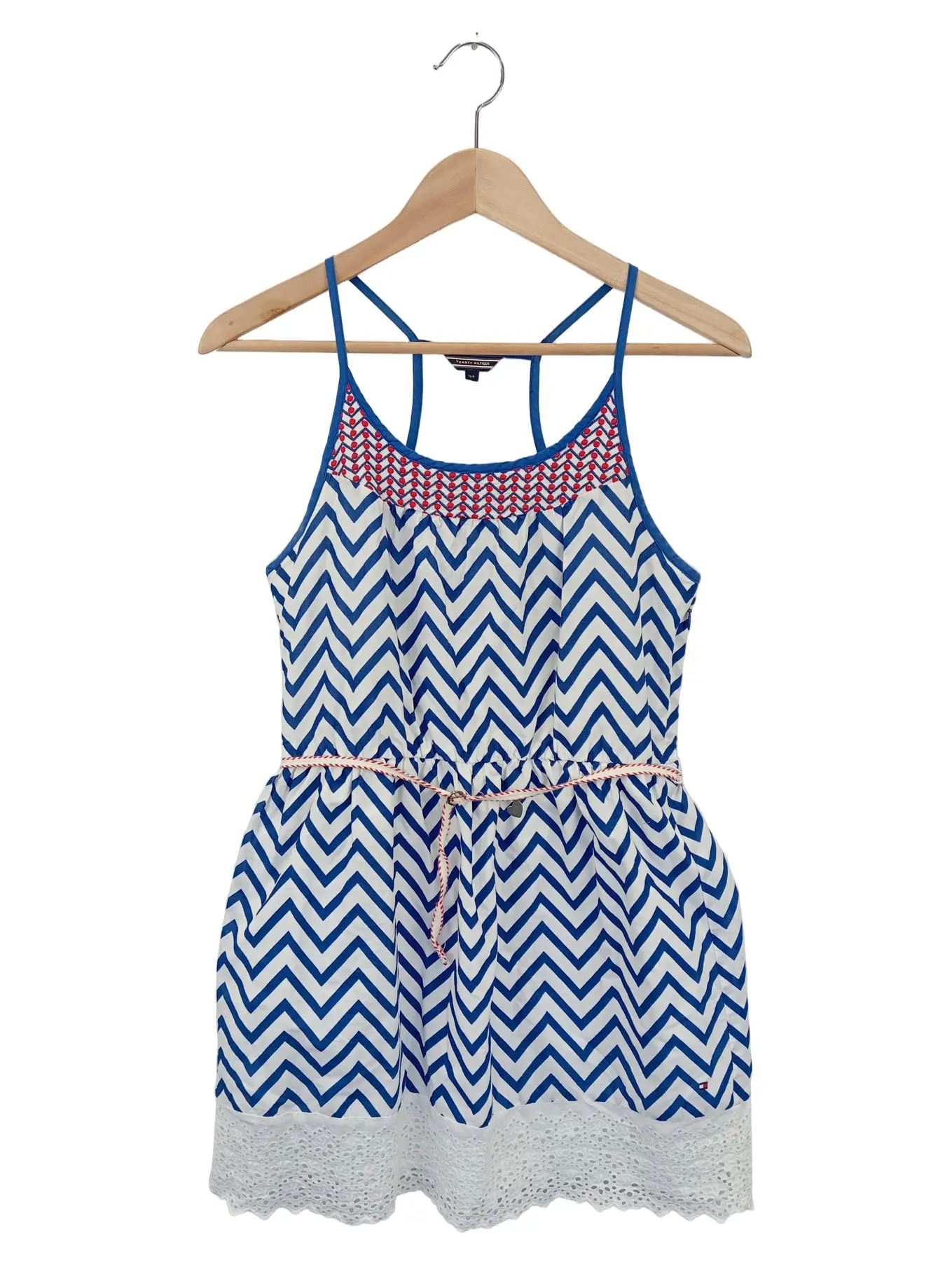 TOMMY HILFIGER Kinder Sommerkleid Gr. 164 Blau Zickzack