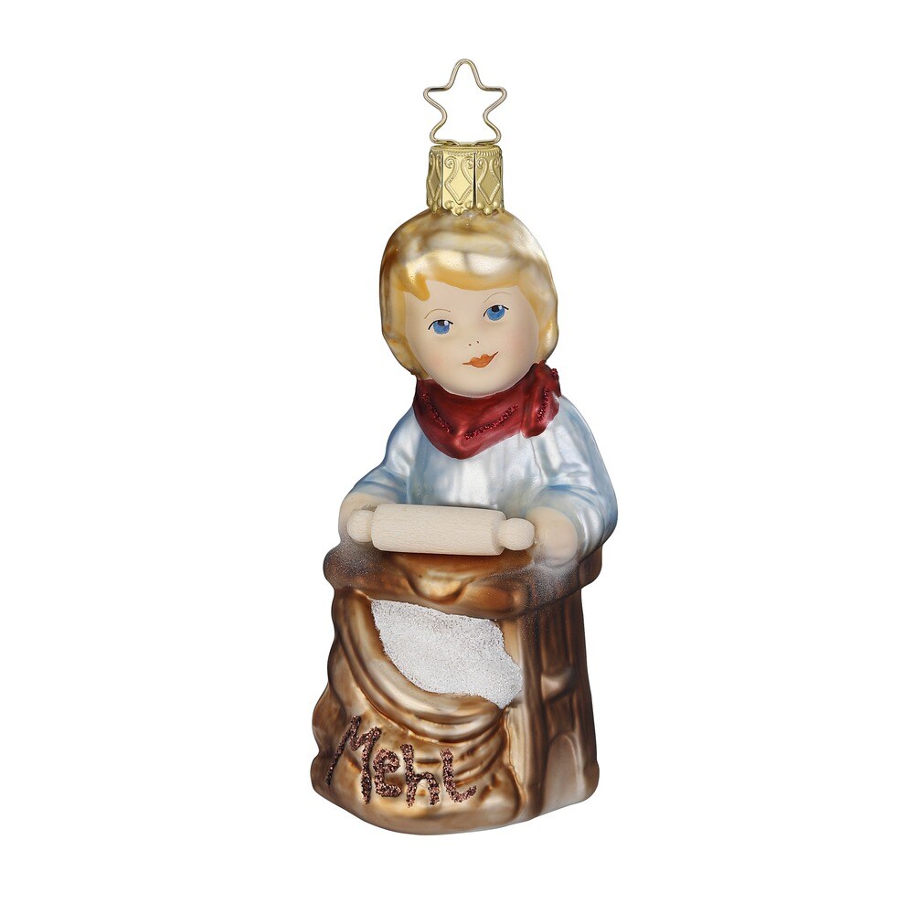 INGE-Glas Manufaktur Christbaumschmuck Bäckerjunge 11cm - Glas Figur Mundgeblasen & Handbemalt Weihnachtsbaum Anhänger Weihnachten Christbaumanhänger Kind Braun Bunt