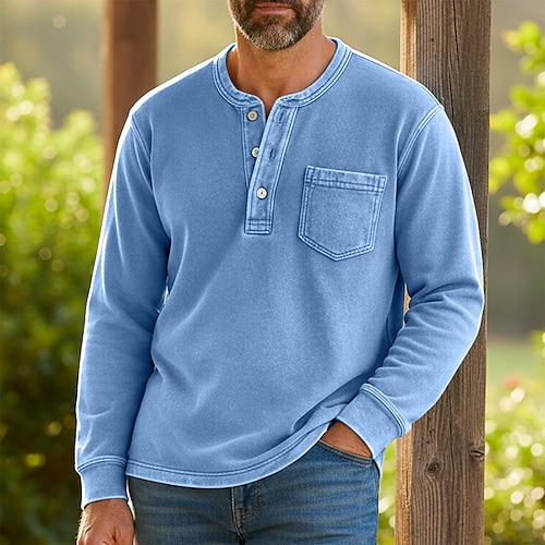 Per uomo Maglia Henley Camicia 100% cotone lavaggio acido Maglietta Manica Lunga Vintage Tinta unita Retrò Vintage Casual Stile Vintage Lavato Henley Casuale Primavera Autunno Autunno Inverno