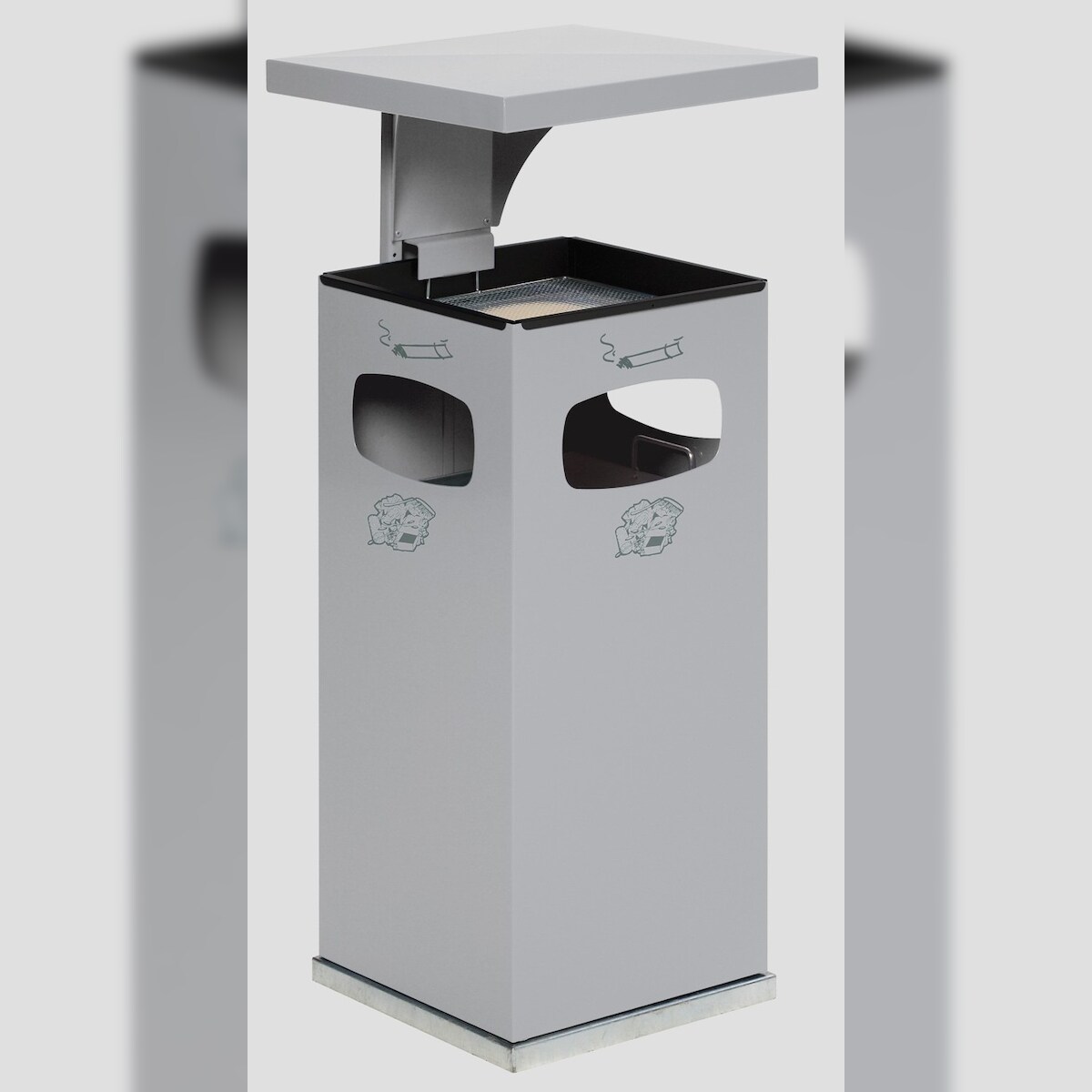PROREGAL Kombiascher mit verstärktem Schutzdach | 38 Liter, HxBxT 91x39,5x39,5cm | Verzinkter Stahl | Silber | Mülleimer Aschenbecher Abfalleimer