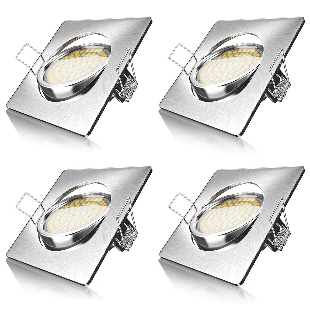 Brandson 4x LED Einbaustrahler in Edelstahl Optik, schwenkbarer Deckenspot mit 320 Lumen / Warmweiß