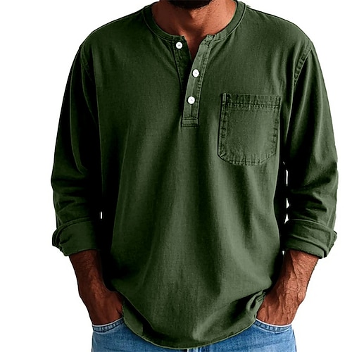 Per uomo Maglia Henley Maglietta Camicia 100% cotone lavaggio acido Top Henley Manica Lunga Tinta unica Semplice Vintage Moda Retrò Bottoni Henley All'aperto Casuale Quotidiano Estate Primavera Tutte