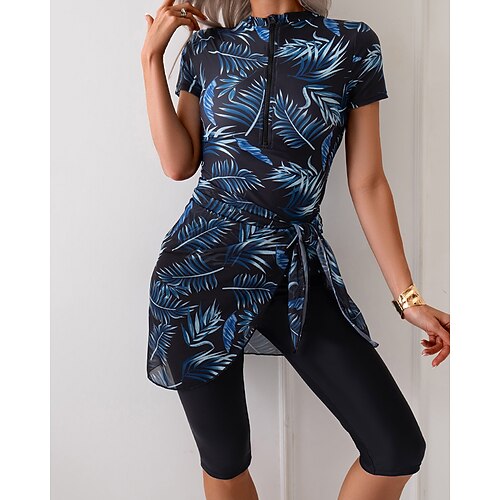 Per donna Top sottomuta Costume da bagno 2 pezzi Top sottomuta Floreale Costumi da bagno Blu Nero Protezione solare UPF 50 Surf Spiaggia Nuoto Estate