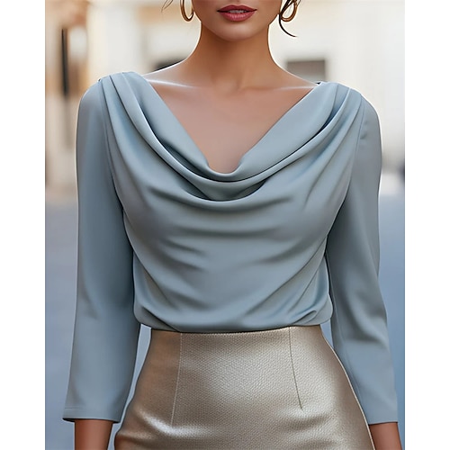 Per donna Camicia Elegant Elegante Raso/Satin Tinta unica Elegante Casual Manica Lunga Top con spalle scoperte Top Regolari Quotidiano Uscire Asimmetrico Nero Rosa Blu Verde Albicocca Primavera