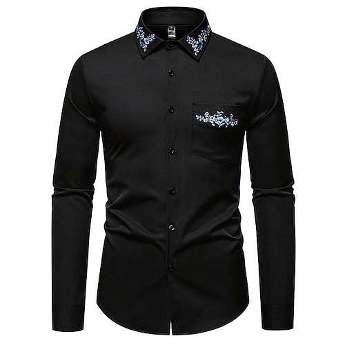 Per uomo Camicia Camicia elegante Camicia con Bottoni Floreale Matrimonio Feste Nero Bianco Azzurro cielo Manica Lunga Bavero Primavera Autunno Abbigliamento Ricamato