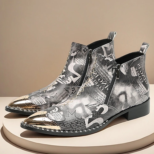 stivaletti da uomo con grafica bianca e nera: design in pelle con stampe audaci, perfetti per uomini alla moda per feste ed eventi informali