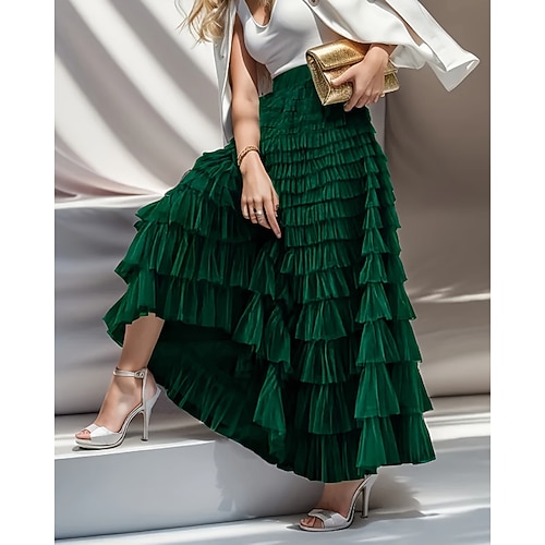 Per donna Tutù Elegante Moda Maxi Vita Alta Gonne Semplice Arricciato Stratificato Inelastico Micro-elastico Vacanza Feste Vinaccia Ametista Nero Rosa Primavera Tulle Poliestere