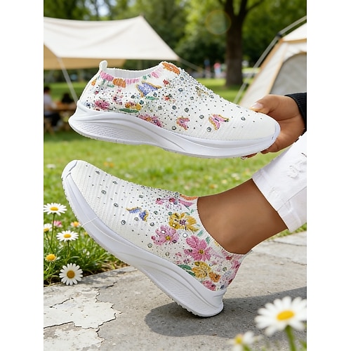 sneakers slip-on da donna in rete floreale – scarpe da passeggio leggere e traspiranti per abbigliamento casual, viaggi e attività all'aperto