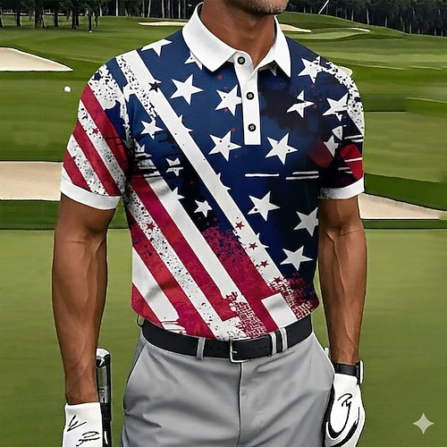 4. Juli 2026 250. Herren Flagge Golf Sport-Poloshirts Kurzarm Polo-Shirts Hemden mit Kragen Lässig Athleisure Festival-Outfit Knöpfe Sommer Blau Blau 1 Blau 2#