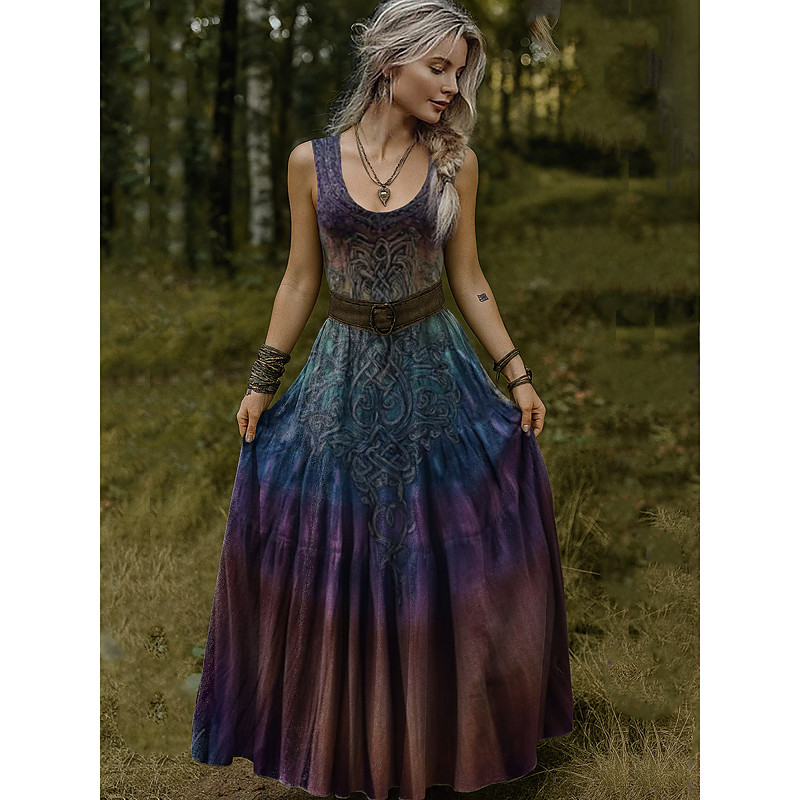 Women's Vintage Viking Celtic Knot Gradient Art Dress Pleated Dress Vacation Casual Boho Standard Fit Graphic Abstract Sleeveless V Neck U Neck Fuchsia Orange Amethyst